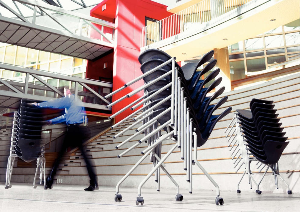 Le sedie Compass-Lupo e Compass-VF, realizzate rispettivamente con scocca in polipropilene e con scocca in multistrati di faggio, sono perfette per arredare grandi spazi come aule universitarie, aule magna e spazi comuni. Ergonomiche e resistenti all'usura, sono facilmente impilabili e trasportabili con apposito carrello. Dotabili di ruote, tavoletta scrittoio, sistema per l'aggancio in fila e molto altro, sono disponibili anche in versione imbottita. Una sedia, molteplici possibilità di realizzazione.