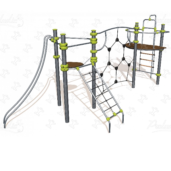 Le dimensioni del prodotto sono: 7,32 m di larghezza, 3,00 m di profondità, 3,40 m di altezza. L´altezza di caduta libera massima (HCL) è di 3,00 m. Disponibili anche in versione con pali portanti circolari in acciaio galvanizzato (M).