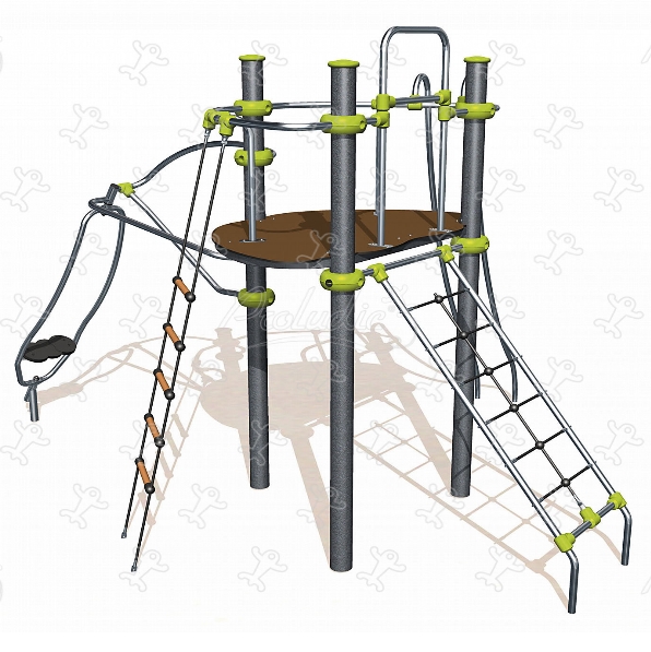Le dimensioni del prodotto sono: 4,80 m di larghezza, 4,10 m di profondità, 3,30 m di altezza. L´altezza di caduta libera massima (HCL) è di 1,95 m. Disponibili anche in versione con pali portanti circolari in acciaio galvanizzato (M).