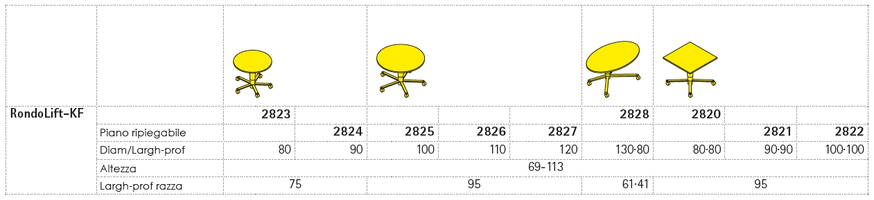 Il tavolo multiuso quadrato RondoLift-KF è regolabile in altezza tramite gas-lift e può essere utilizzato sia stando in piedi che seduti. E´ dotato di ruote per un agevole spostamento e garantisce il massimo comfort, la massima flessibilità ed adattabilità. Il tavolo multiuso RondoLift-KF è uno stumento funzionale e dinamico ed è disponibile con piano di diverse dimensioni e molteplici varianti di colori e finiture.