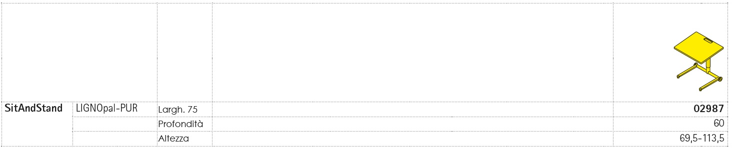 La cattedra SitAndStand si adatta ad ogni tipo di utilizzo: è facilmente trasportabile grazie alla ruote piroettanti, è regolabile in altezza tramite gas-lift e può quindi essere usata sia stando in piedi che stando seduti. Il suo piano leggermente inclinato garantisce inoltre la massima ergonomia. La cattedra SitAndStand è disponibile nella versione base, nella versione con uno o due ripiani ed è personalizzabile grazie ad una vasta gamma di colori e finiture a scelta. Tabella completa dimensioni e misure nell´immagine sottostante