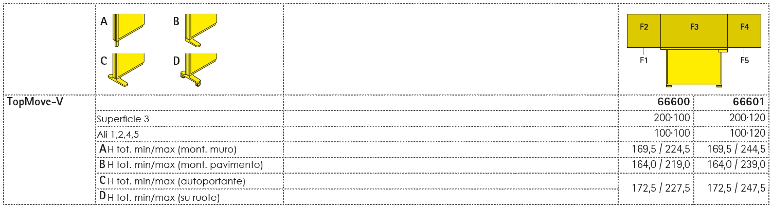 La lavagna saliscendi a libro TopPilon-V può essere predisposta per il fissaggio a muro, per l´ancoraggio a pavimento, può essere autoportante o dotata di ruote. Disponibile in numerose dimensioni, è dotata di un rapido e silenzioso meccanismo saliscendi tramite contrappeso che permette di regolare l´altezza della superficie di scrittura. Le ali laterali aumentano la superficie di scrittura, disponibile in un´ampia gamma di rigature e quadrettature. La superficie della lavagna è realizzabile in due diverse varianti: in acciaio smaltato a 800 gradi colore verde, adatto alla scrittura con gessi bianchi e colorati o in acciaio smaltato a 800 gradi di colore bianco per la scrittura a pennarello. La lavagna TopMove-V è completa, per garantire la massima comodità, di lista portagessi, per tutta la lunghezza, e di vasca portaspugna.