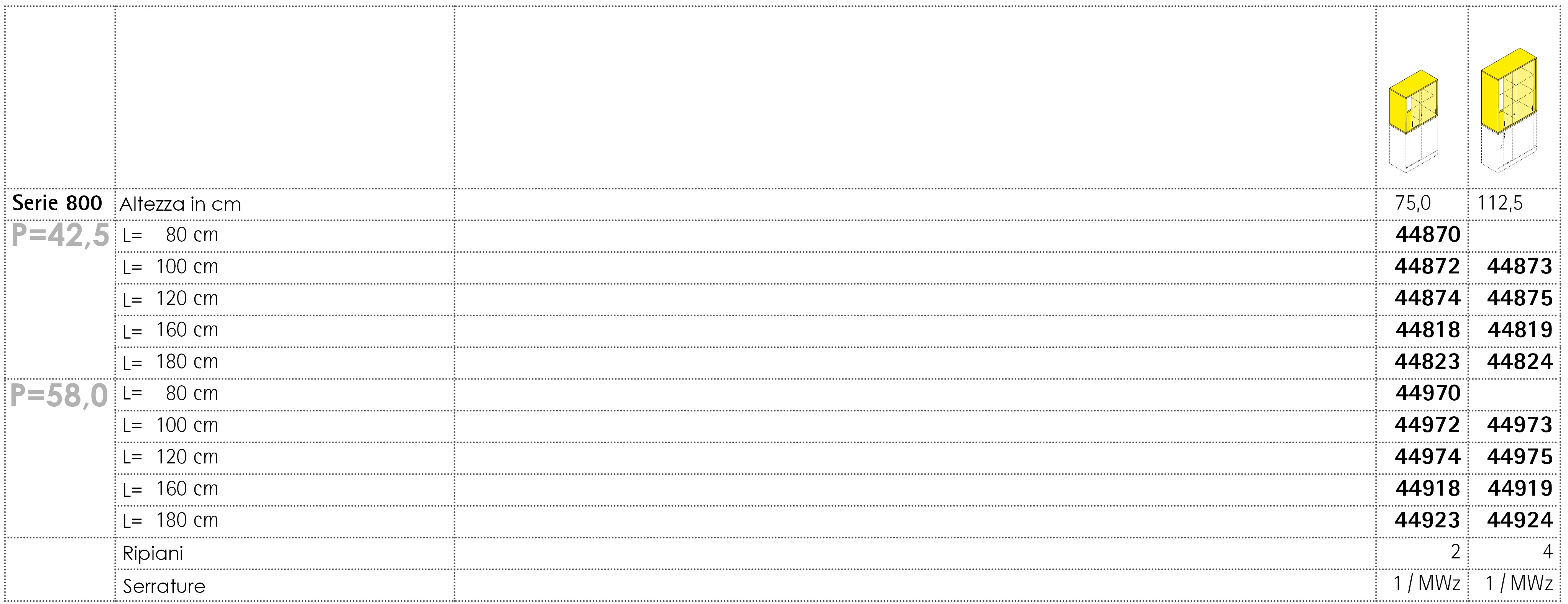 I sopralzi della Serie 800 sono disponibili in un´ampia gamma di dimensioni, soluzioni di partizione interna e in numerose varianti di colori finiture. Possono essere dotati di un numero variabile di ripiani interni, a seconda della necessità, realizzabili in numerosi materiali e colori. I sopralzi sono chiudibili con serratura separatamente o in coppia, e possono essere personalizzati con numerose tipologie di maniglie diverse per colori e materiali.