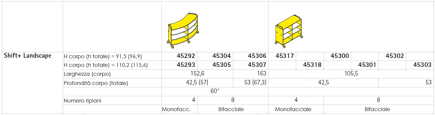 I mobili contenitori della linea Shift + Landscape sono disponibili in due differenti altezze e possono essere integrati con elementi differenti per creare molteplici composizioni; l´accostamento dei mobili contenitori agli elementi morbidi permette la creazione di angoli di lavoro separati, creando uno spazio nello spazio. I mobili possono essere uniti e collegati tra loro in modo stabile e sicuro ma non definitivo grazie ai magneti di cui sono provvisti sugli appositi lati di connessione.