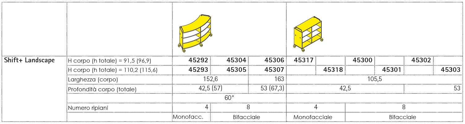 I mobili contenitori della linea Shift + Landscape sono disponibili in due differenti altezze e possono essere integrati con elementi differenti per creare molteplici composizioni; l´accostamento dei mobili contenitori agli elementi morbidi permette la creazione di angoli di lavoro separati, creando uno spazio nello spazio. I mobili possono essere uniti e collegati tra loro in modo stabile e sicuro ma non definitivo grazie ai magneti di cui sono provvisti sugli appositi lati di connessione.