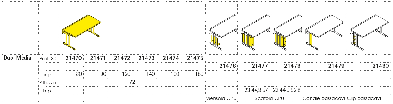 Il tavolo da laboratorio Duo-Media è il supporto ideale per le nuove esigenze didattiche che vedono nell´apprendimento informatico uno dei capisaldi dell´istruzione scolastica. Il tavolo è completo di vano longitudinale passacavi con sportellino apribile dotato di spazzoline passacavi e chiusura con chiave. Ampia gamma di colori e finiture a scelta.