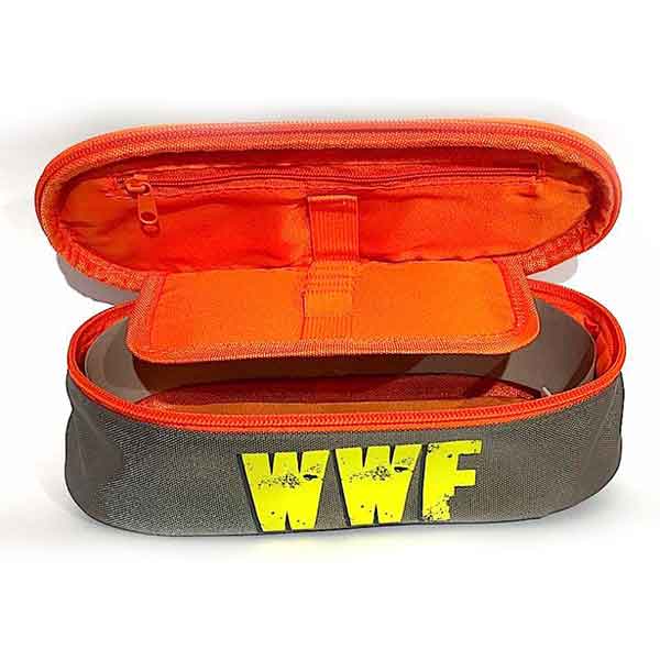 L´astuccio Ovale WWF maschile realizzato da Panini Scuola ha ampio spazio all´interno per contenere comodamente tutto il materiale ed un comodo divisorio con elastici per riporre ordinatamente penne e matite. L´astuccio Ovale WWF è dotato inoltre di tasca interna con zip. L´astuccio Ovale WWF maschile misura circa 23 x 10 x 7 cm.