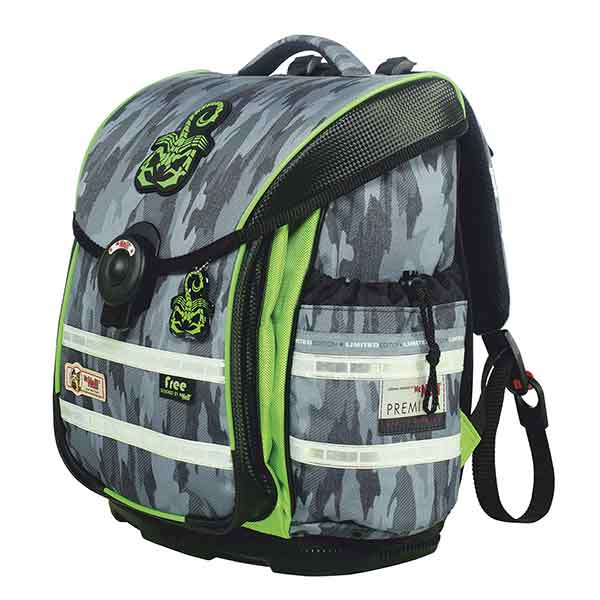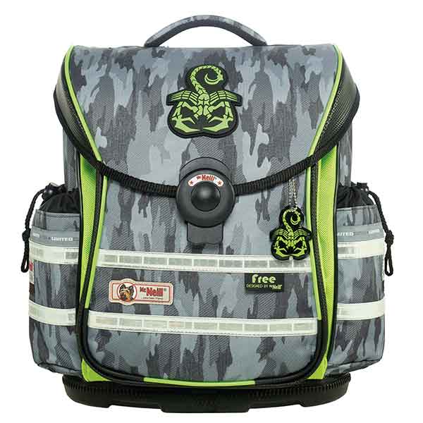 Il set zaino McNeill ERGO Light PLUS 4 pezzi Free è completo di zaino McNeill ERGO Light PLUS, sacca sport, astuccio ovale , astuccio a scomparti completo di matite triangolari, gomma, temperamatite a due fori, righello e squadretta. Lo zaino è comodo, pratico e leggero con schienale rigido ed ergonomico per un sostegno corretto della schiena. Lo zaino McNeill ERGO Light ha fondo rinforzato in plastica, chiusura facile ed intuitiva con strisce laterali e frontali catarifrangenti per un facile avvistamento. Lo zaino McNeill Free ha una simpatica lampadina portatile a forma di scorpione agganciato allo zaino. Lo zaino McNeill è spazioso con due comode tasche laterali e scomparti pensati per contenere in modo ordinato tutto l´occorrente scolastico.I prodotti del set zaino McNeill ERGO Light 4 pezzi sono realizzati in Germania.