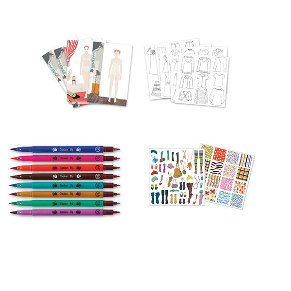 Crea il tuo stile e prepara le tue modelle alla sfilata con vestiti di colore e tessuto diverso e arricchisci il tutto con tanti accessori contenuti nella confezione. Crea i particolari disegnando con gli 8 pennarelli dalla punta fine forniti nella scatola. Da 9 a 15 anni.