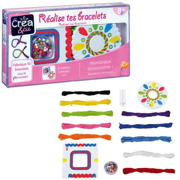 Il set braccialetti 3in1 realizzato da Crea&Cie è la confezione perfetta da regalare alle vere appassionate di braccialetti. Il set braccialetti 3 in 1 è composto da 3 cofanetti in plastica contenente tutto il materiale per creare 3 diverse tipologie di braccialetti Con il primo cofanetto è possibile comporre oltre 30 braccialetti e 10 anelli, grazie ad una raccolta di perline di varie forme, misure e colori, tutti riposti ordinatamente in contenitori trasparenti, elastico trasparente ed ago flessibile. Il secondo cofanetto è composto da fili in 10 colori ognuno lungo 7,3 mt, telaio tondo, telaio quadrato, perline ed ago per perline. Il terzo cofanetto contiene fili in 10 colori ognuno lungo ben 7,6 mt e due telai tondi contrassegnati da vari colori che accompagnano, in modo intuitivo, passo a passo le bambine al corretto procedimento. Il set braccialetti 3in1 Crea&Cie è competo di 3 libretti d´istruzione, uno per ogni cofanetto. Il set braccialetti 3in1 Crea&Cie è ideale a partire da 8 anni.