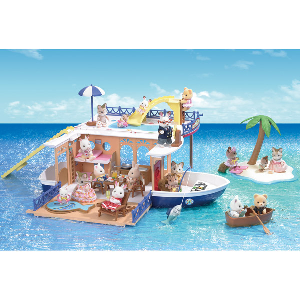La barca da crociera Sylvanian Family è un playset completo di arredamento e pergonaggio coniglietta Sylvanian Family. La barca da crociera Sylvanian Family è realizzata in plastica, può essere chiuso e aperto a piacimento. La barca da crociera Sylvanian Family comprende 2 letti, una cucina e un salotto, una spiaggia e la prua dispone di un barbecue. Nella barca da crociera Sylvanian Family i letti si trasformano in doccia. Il set la barca da crociera Sylvanian Family comprende anche un ´isola. Dim .: L.50 x H.15 x L.18 cm. Da 3 anni.