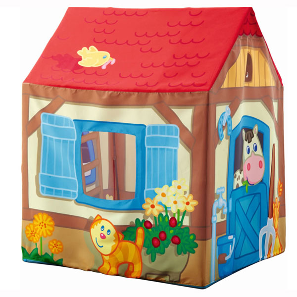 La tenda Fattoria è una confortevole tenda dove i bambini possono manifestare la loro immaginazione proiettandosi in un luogo affascinante e pieno di emozioni come la fattoria. I disegni all´ esterno di questa tenda Haba ricreano una simpatica fattoria con fiori, galline, uccelli e una mucca curiosa che si affaccia alla finestra. Il montaggio è facile e veloce grazie a stecche in plastica componibili. La tenda Fattoria è in poliestere. Adatta da 1 anno e mezzo.