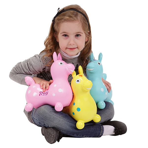 Rody Junior Azzurro è una valida alternativa ai pupazzi di peluche: riprende le stesse caratteristiche in miniatura del cavalcabile Rody. Rody Junior Azzurro Ledraplastic è un morbido gonfiabile in vinile riciclabile al 100%, atossico e facilmente lavabile con acqua e sapone neutro. Rody Junior Azzurro, grazie alle sue forme rotonde, alla morbida plastica e al musetto sorridente, è molto apprezzato da tutti i bambini; può arrivare ad una circonferenza massima della sella di 33 cm e viene venduto sgonfiato. Dai 2 anni.