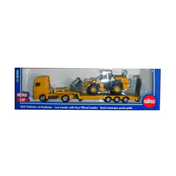 Non farti scappare il magnifico modellino del Camion ribassato con ruspa Liebherr Siku in scala 1:87.